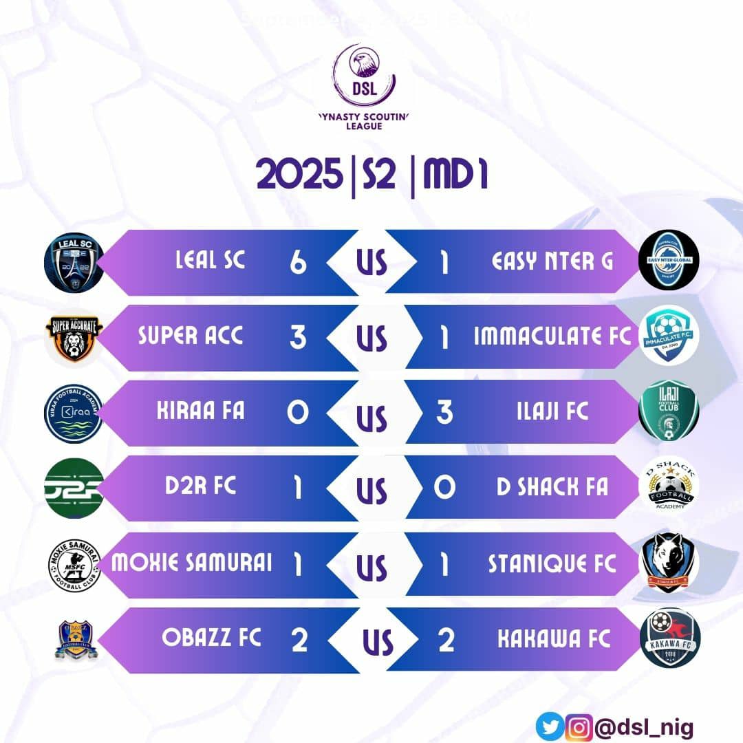 The much-anticipated Dynasty Scouting League 2025 season 2 kicked off on Thursday, 4th September, at the Otunba Dipo Dino International Stadium in Ijebu-Ode, Ogun State. Six games were played, starting with the opening fixture between three-time league winners and defending champions Leal SC and one of the four debutant teams, Easy Nter Global FC, from Lagos State.