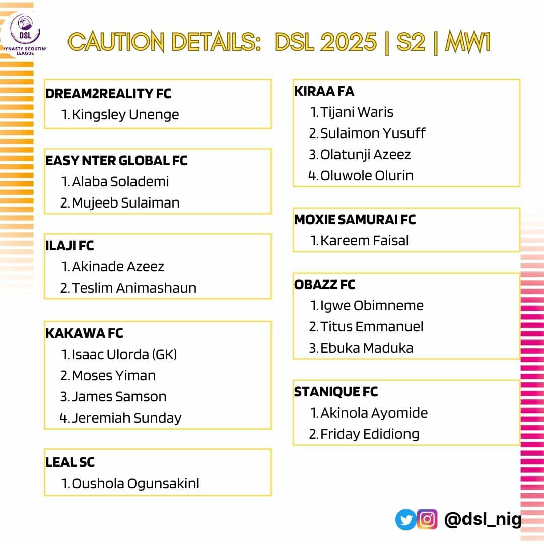 A total of 20 yellow cards were issued in MW1, with the Obazz FC v Kakawa FC match recording the highest number (7). No card was issued in the Super Accurate FA v Immaculate FC match, and it’s always a pleasure to have such