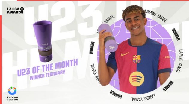 FC Barcelona wonder kid Lamine Yamal has been chosen as the LALIGA EA SPORTS Best U23 Player for February, an award presented by LALIGA. With his skill, speed, and vision, Lamine Yamal has helped Hansi Flick’s side to a perfect record in the competition this month, putting them at the top of the table.