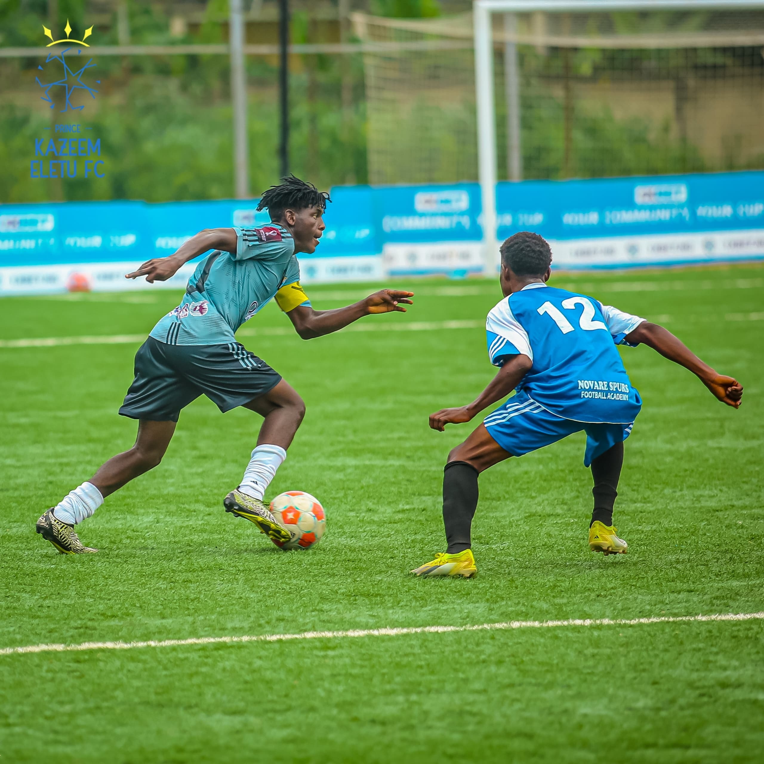 Tobiloba Ashmi (jersey number 8) scored a beautiful goal to increase his team lead with an assist from Jude Bright (jersey number 11), while Johnson Samuel scored the third goal that ensured Prince Kazeem Eletu FC moved to the next round of the tournament.